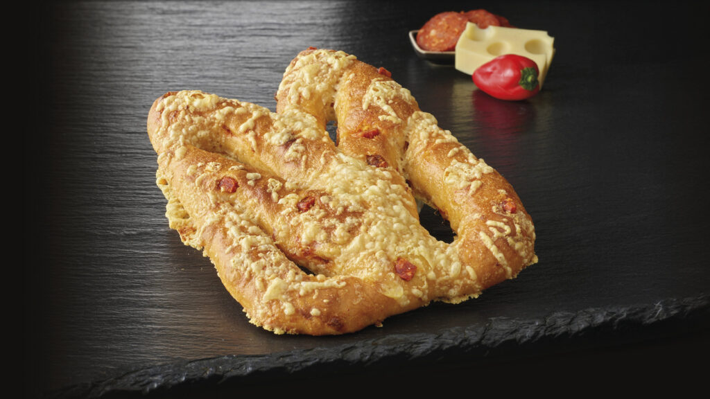 Jednou z listopadových novinek je Chorizo Fugas, který zaujme nejen vzhledem, ale také zasytí a potěší chuťové buňky. Toto pečivo je inspirováno tradiční francouzskou recepturou, doplněnou španělskými prvky. Jemně pikantní zauzená paprika a tymián těstu dodává typickou středomořskou vůni. Před upečením je fugas posypán ementálem – oblíbeným francouzským sýrem, který mu dodá bohatou chuť.
