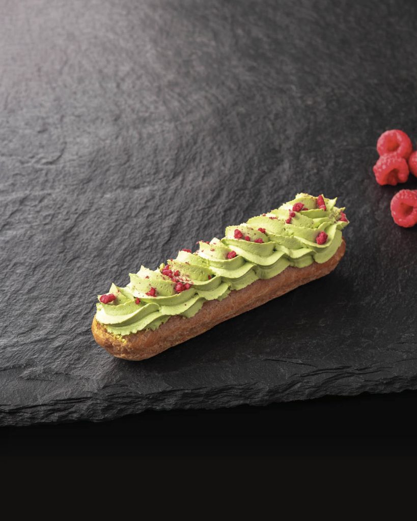 Jemné odpalované těsto plněné lehkým krémem s matchou doplňuje výrazná ovocná linka kyselých malin, která krásně vyvažuje její zemitou chuť. Výsledkem je harmonická kombinace svěžesti a elegance s lehce netradičním twistem, která potěší nejen milovníky klasiky, ale i ty, kteří rádi objevují nové chutě.