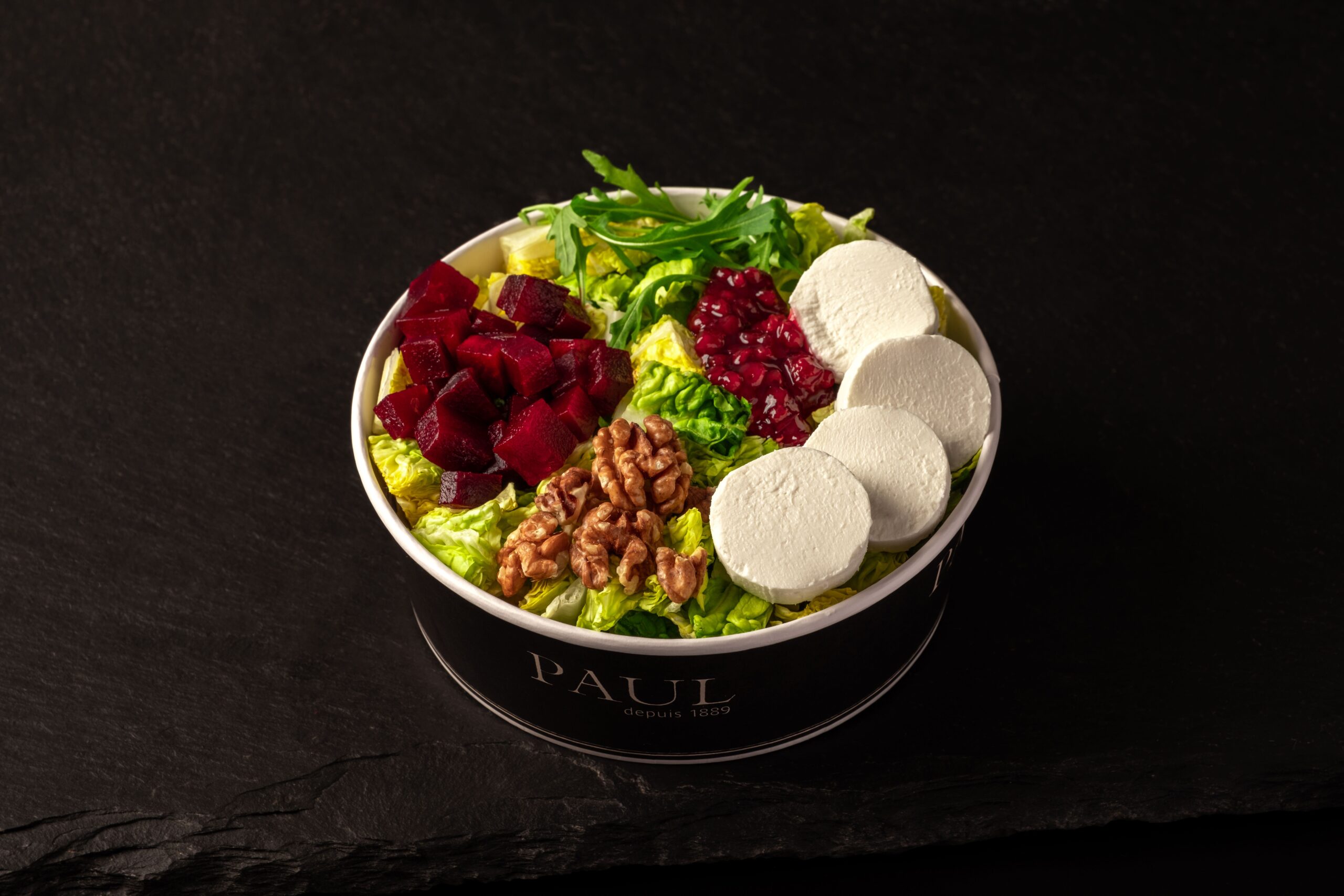 Kombinace křehkého Little GEM salátu a rukoly, doplněného červenou řepou, lahodným kozím sýrem, brusinkovou pomazánkou a křupavými vlašskými ořechy. Ke všem klasickým salátům Vám automaticky přibalíme 1 ks pečiva zdarma.